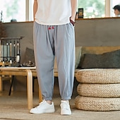 popular ! Men's Harem Joggers Linen Pants Trousers Summer Pants Drawstring Plain Outdoor Ankle-Length Home Casual Daily Chinoiserie Folk Style Loose Fit ArmyGreen Black Micro-elastic