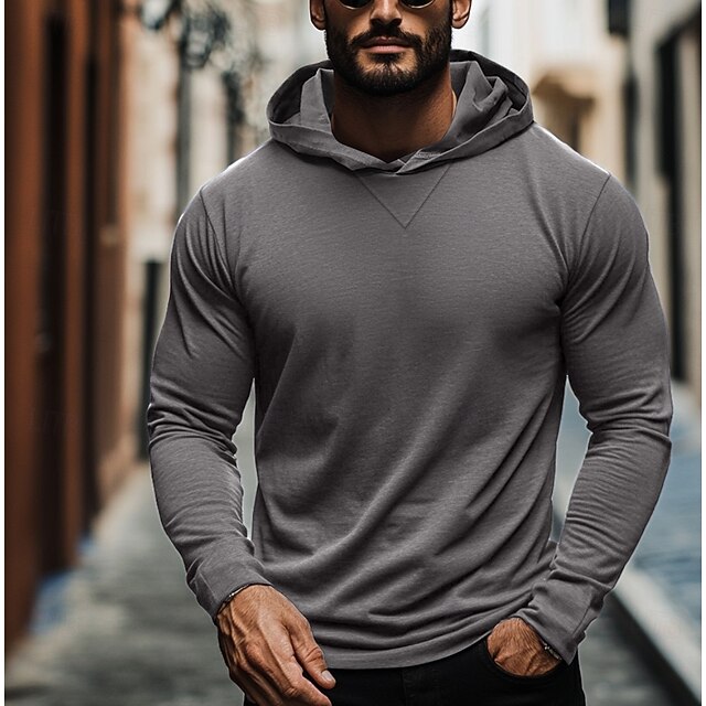 More information about 95% Cotton Men's T Shirt Tee Top Plain Hooded Vacation Street Long Sleeve Hooded Clothing Apparel Fashion Designer Basic Tee