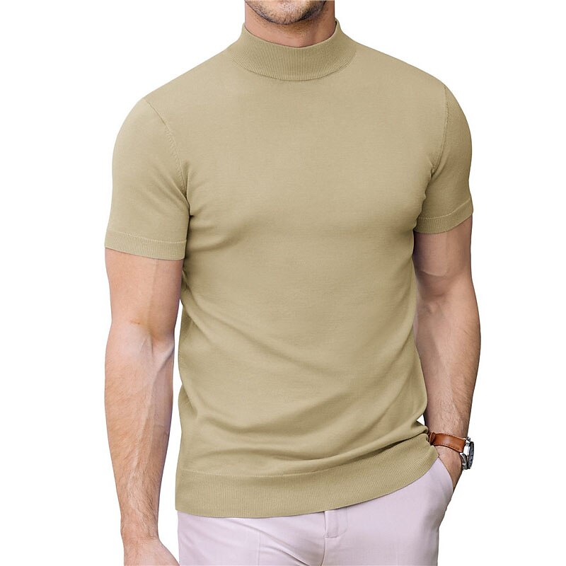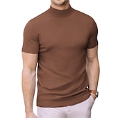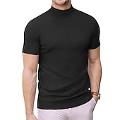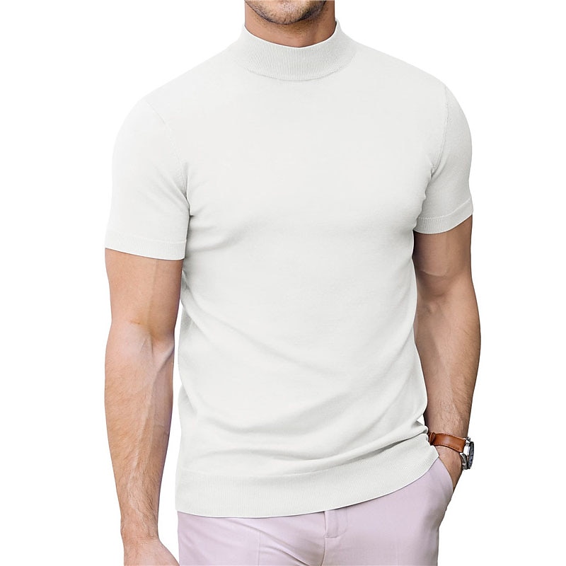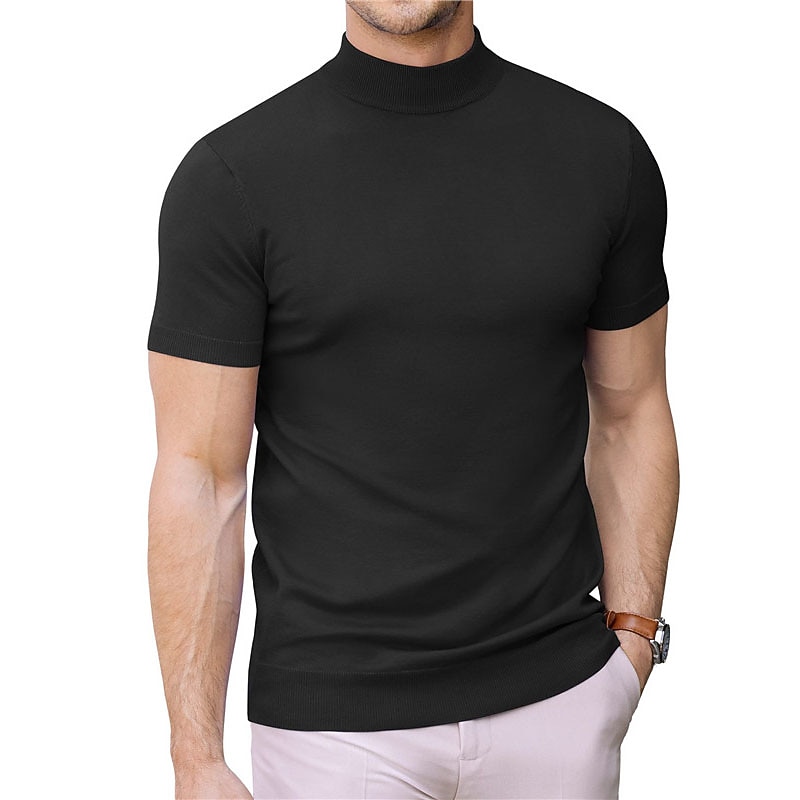 Men's T Shirt Turtleneck shirt Knit Tee Tee Top Short Sleeves Turtleneck Summer Plain Fashion Designer Basic Knitting Vacation Street Going out Black White Navy Blue Top Tee for Men