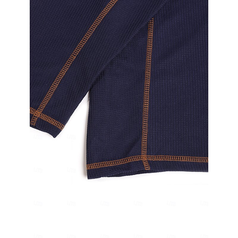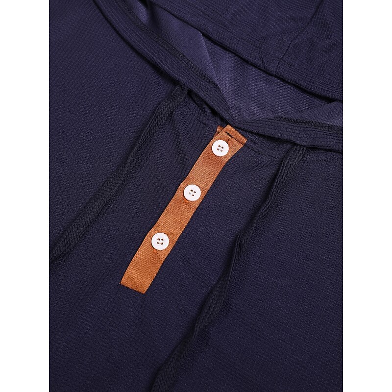 More information about Men's Waffle Hoodies T Shirt Waffle Henley Shirt Henley Shirt Long Sleeve Hooded Henley Spring Spring & Fall Plain Fashion Designer Basic Patchwork Hooded Vacation Street Casual Black White Navy Blue