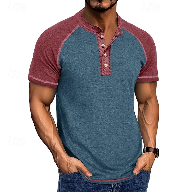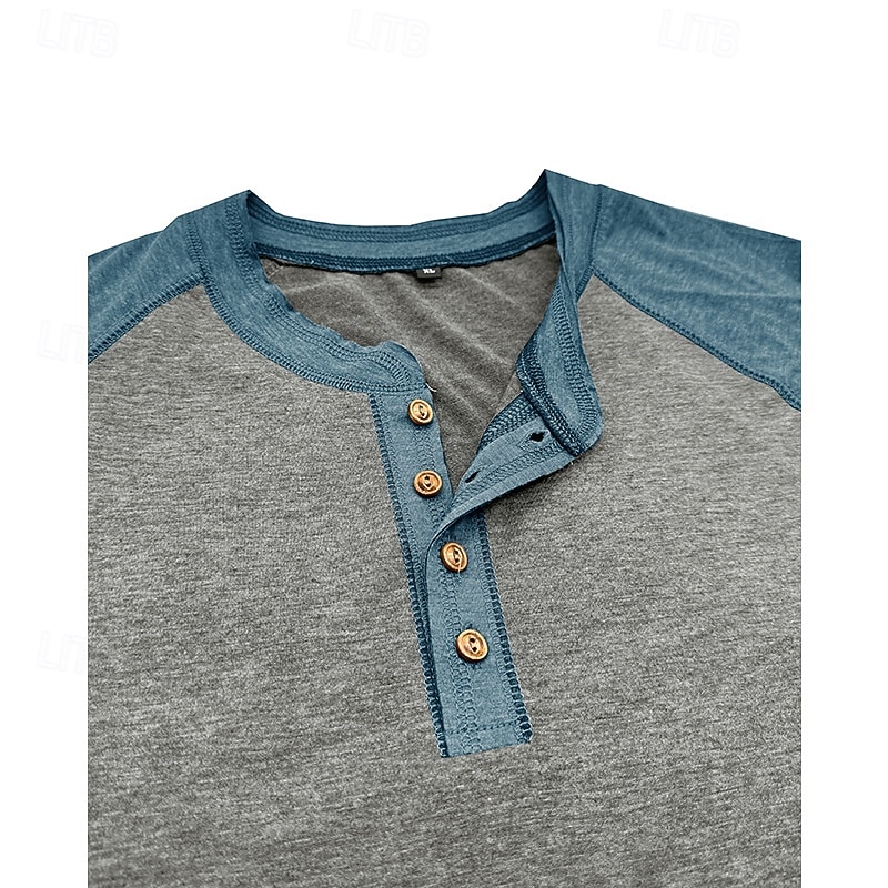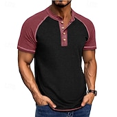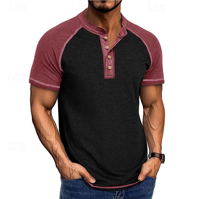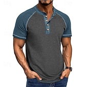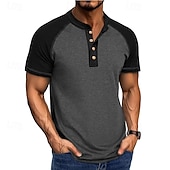 More information about Men's Henley Shirt Tee Top Baseball T-Shirt Short Sleeve Color Block Fashion Designer Raglan Sleeves Henley Vacation Street Going out Summer Dark Grey Black Gray Henley T-Shirt