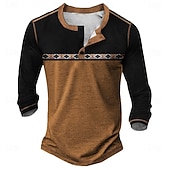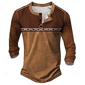 More information about Men's Geometric Retro Ethnic Henley Shirt Tee Long Sleeve Vintage Fashion Designer Outdoor Casual Daily Spring & Fall Dark Brown Lake blue Black Henley Henley T-Shirt