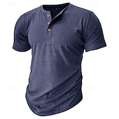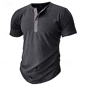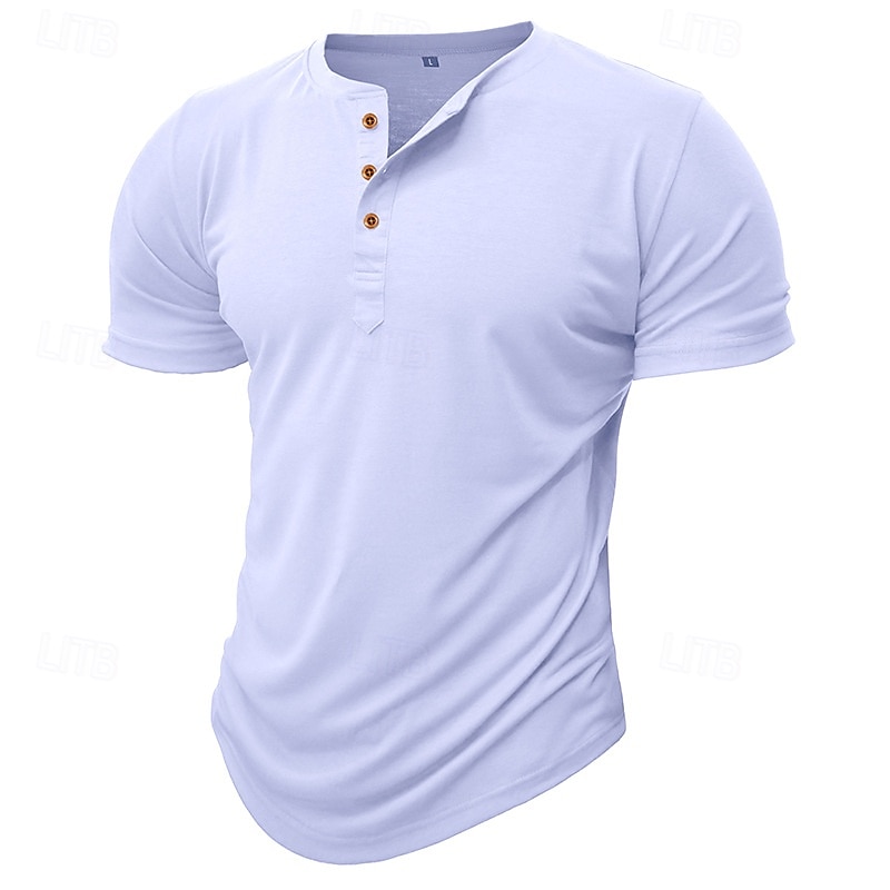 More information about Men's T Shirt Henley Shirt Tee Top Short Sleeve Plain Fashion Designer Basic Button Up Henley Vacation Street Going out Spring & Summer Black White Light Green Henley T-Shirt