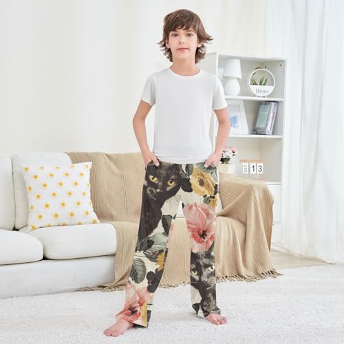 Cat Butterfly Flowers Boys Long Pants Soft Trousers Elastic Waist Kids Lounge Bottoms with Pockets S-XL 5