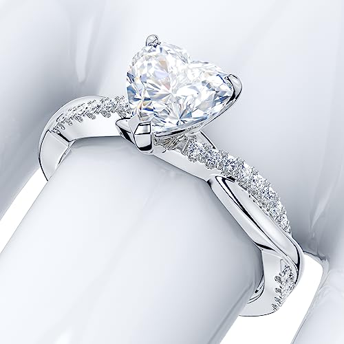THELANDA Sterling Silver 4-Prong Petite Twisted Vine 1CT Heart-shaped Genuine Moissanite Engagement Ring Promise Bridal Ring