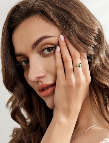 Ring size: 5Material: MetalMetal type: BrassGem type: Created EmeraldItem type name: Engagement RingsDesign: Emerald rings for women feature a 2-carat Emerald cut created emerald which is set in a timeless 4-prong-setting craft to prevent the stone from falling off. Simple and trendy, a perfect mix of supreme and affordabilityMaterial: 14K gold plated ring with stone, nickel free and no tarnish, these women's wedding rings are not only elegant but also durable and hypoallergenic, fit for everyday wearOccasions: The women's gold ring is great for many occasions, such as for engagements, promises, weddings, parties, or vacations, and also can fit your daily outfit very wellGifts: With a box, these gold rings are good choice for your wife, Mom or friends on birthdays, anniversaries, Valentine's Day, or some special daysJewelry Care: Please note that these are not real gemstones but created ones, making them an affordable alternative to real gemstones. Avoid the jewelry in contact with moisture, heat, or corrosive substances can let you enjoy longer wearing Perfect for everyday use. High quality materials and excellent craftsmanship ensure long-lasting durability.