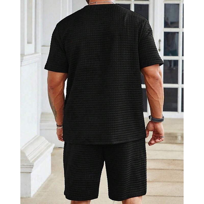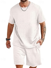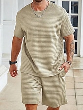 This Men's Waffle Tracksuit T shirt & Shorts Set Outfit Set Crew Neck Outdoor Daily Sports Pocket Drawstring 2 Piece Plain Black White Khaki Polyester Activewear iconic Casual Summer combines elegant design with practical functionality. Every detail has been carefully considered to ensure you get the best possible experience. The first-class construction means this product will serve you well for years to come.