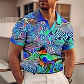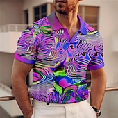 popular ! Men's Graphic Polo Shirts Golf Shirt Short Sleeve Polo Shirts V Neck Casual Vacation Wear Rave Wear Party Outfits 3D Print Red Blue Purple