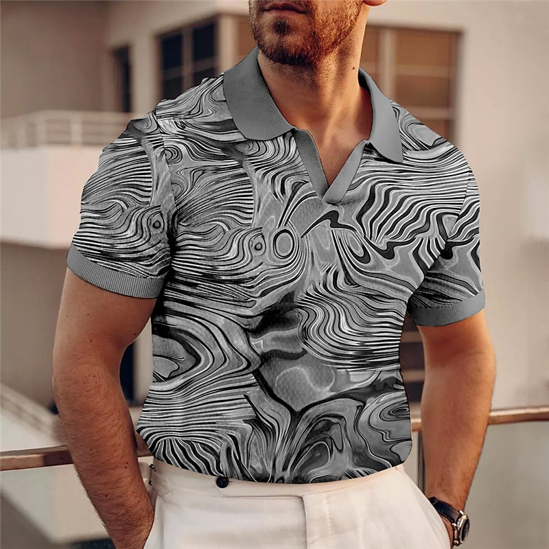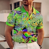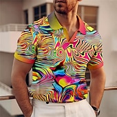 Men's Graphic Polo Shirts Golf Shirt Short Sleeve Polo Shirts V Neck Casual Vacation Wear Rave Wear Party Outfits 3D Print Red Blue Purple 7