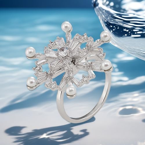 Why Choose Spinner CZ Pearl Snowflake Fidget Statement Ring for Women - Dainty Crystal Winter Flower Rotated Relief Anxiety Finger Band Adjustable Open Wedding Engagement Promise Rings Delicate Christmas Jewelry?