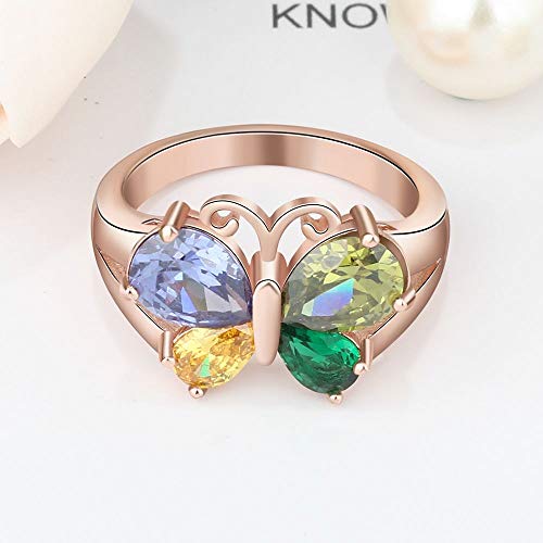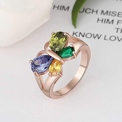 Why Choose Personalized Mothers Rings with 4 Simulated Birthstones Rings for Mothers Promise Butterfly Ring for Women (Rose gold, 7)?