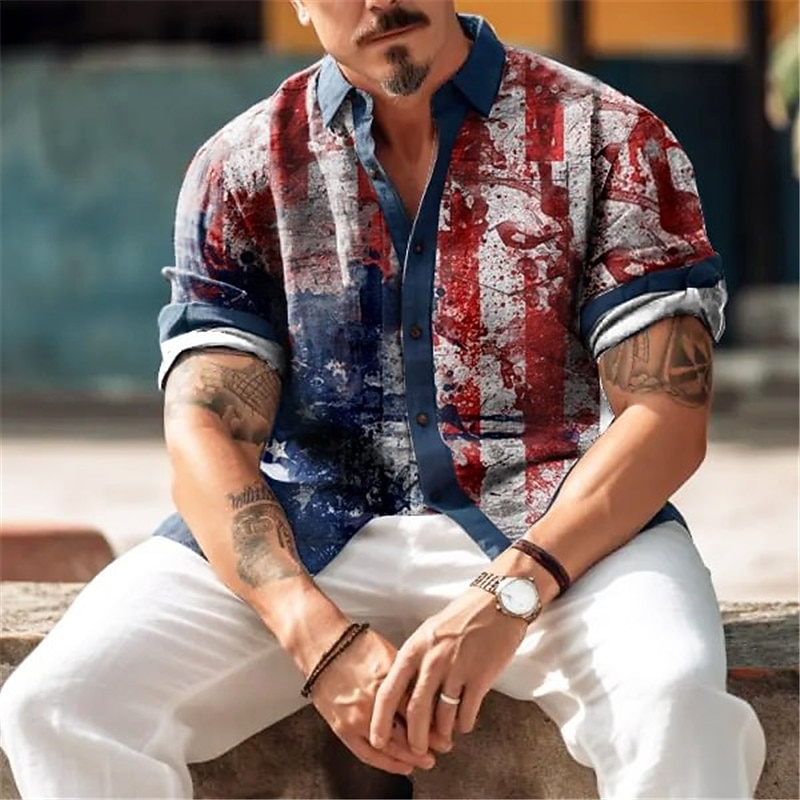 American Independence Day Men's Vintage American Flag Shirt Button Up Shirt Short Sleeve Fashion Streetwear Designer Daily Going out Independence Day Summer Spring Turndown Print Red Navy Blue Blue 7