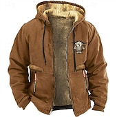 Highlights [Fabric and Comfort] : This men's sweatshirt is constructed from high-quality polyester fabric, providing a comfortable fit suitable for fall and winter. The fleece lining ensures additional warmth, making it an ideal choice for cooler weather. The material is stretchy, offering ease of movement for everyday wear. [Style and Fit] : With a regular fit design, this vintage Western-style sweatshirt embraces a classic look with a touch of modernity. It features long sleeves and a hooded neckline, perfect for a relaxed yet sleek appearance. The sweatshirt's design elements create a sophisticated Western vibe. [Design Highlights] : The sweatshirt boasts a graphic print featuring cowboy and deer motifs, adding a unique and rugged flair to the overall aesthetic. The contrasting zipper details on the front pockets enhance its modern appeal, while the emblem on the left chest provides an eye-catching focal point. [Versatile Occasions] : This sweatshirt is versatile enough for a range of activities, including vacations, casual outings, and streetwear. It pairs well with various outfits, making it a practical choice for those looking to showcase individual style during fall and winter. [Size Range] : Available in a broad size range from S to XXXL, this sweatshirt caters to a variety of body types, ensuring a comfortable and flattering fit for all. Choose from color options like brown, green, and black to match personal preferences and style. Perfect for everyday use. excellent materials and excellent craftsmanship ensure long-lasting durability.