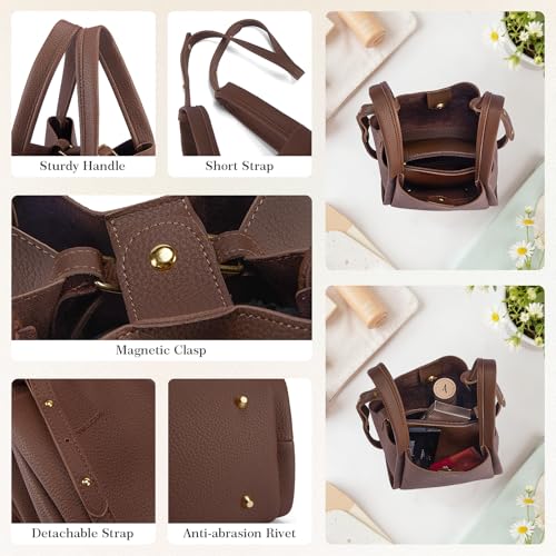 Bucket Bags for Women Vegan Leathe Crossbody Bags Trendy with Removable Shoulder Strap Mini Bucket Purses Handbag 4