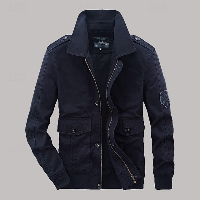 This Men's Cargo Jacket Transition Jacket Going out Wearproof Pocket All Seasons Plain timeless Lapel Regular Navy Blue Khaki Army Green Jacket combines elegant design with practical functionality. Every detail has been carefully considered to ensure you get the best possible experience. The premium construction means this product will serve you well for years to come.