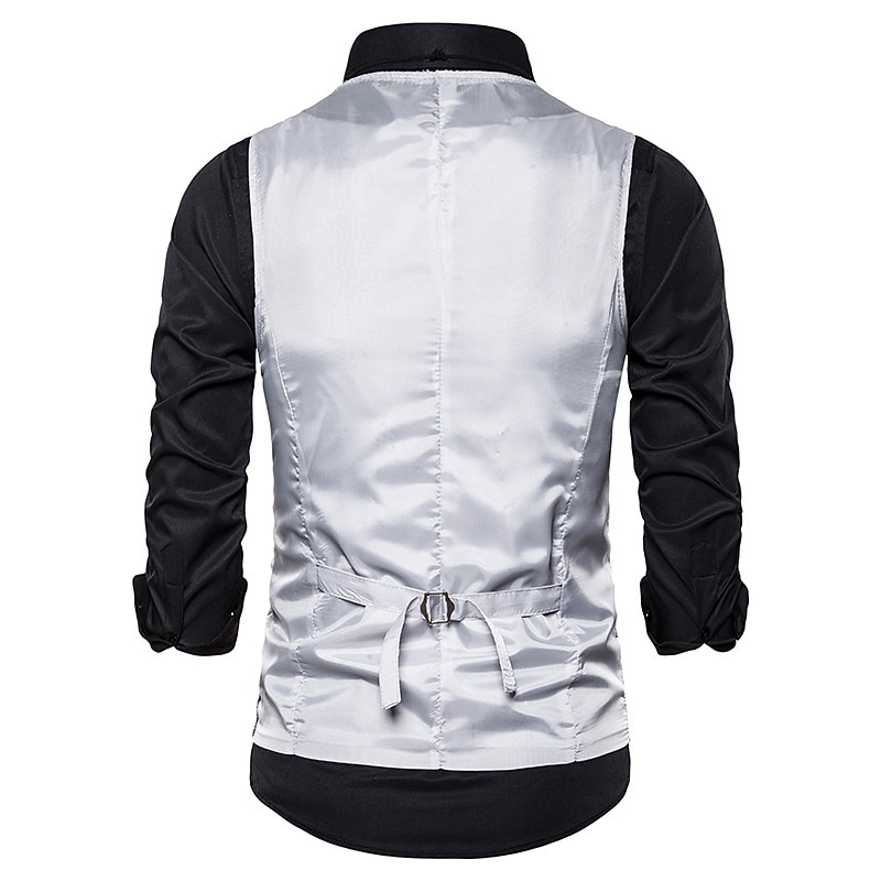 Men's Vest Gilet Wedding Party Party / Evening Going out Streetwear Casual Spring Fall Pocket Polyester Warm Quick Dry Solid Color Single Breasted V Neck Regular Fit Silver Black Red Royal Blue Vest 5