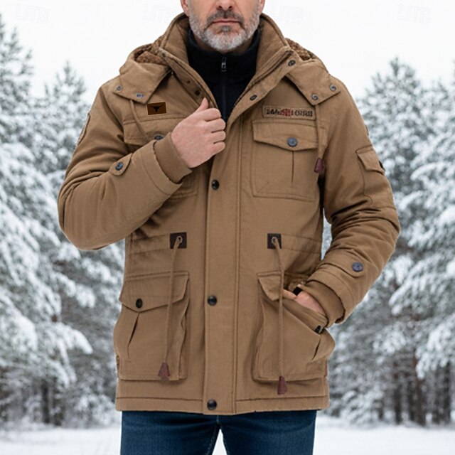 Why Choose Men's Cow Print Fleece Jacket Military Jacket Parka Thermal heated Thicken Casual Outdoor Home Detachable Hood Multiple Pockets Coat Outerwear Fall Winter Hooded Long Sleeve khaki?