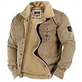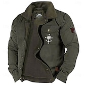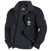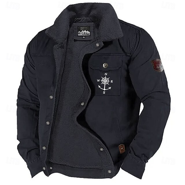 More information about Men's Nautical Compass Print Embroidered Fleece Jacket Sherpa Trucker Jacket Work Cargo Jacket Turn-Down Collar heated Winter Cotton Jacket Vintage Casual Going Out Coat Multi-Pockets