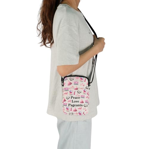 JXGZSO Funny Pageant Queen Gift Beauty Pageant Gift Pageant Crown Crossbody Bag Peace Love Pageant Shoulder Bag 6