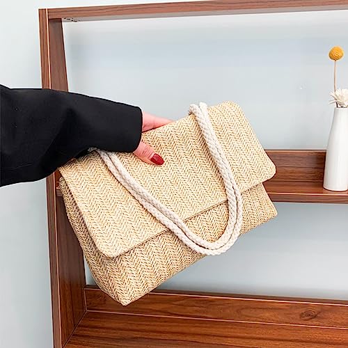 popular ! Women's Khaki Straw Crossbody Bag, Large Capacity, Summer Travel Handbag (10.6" X 7.9" X 3.1")