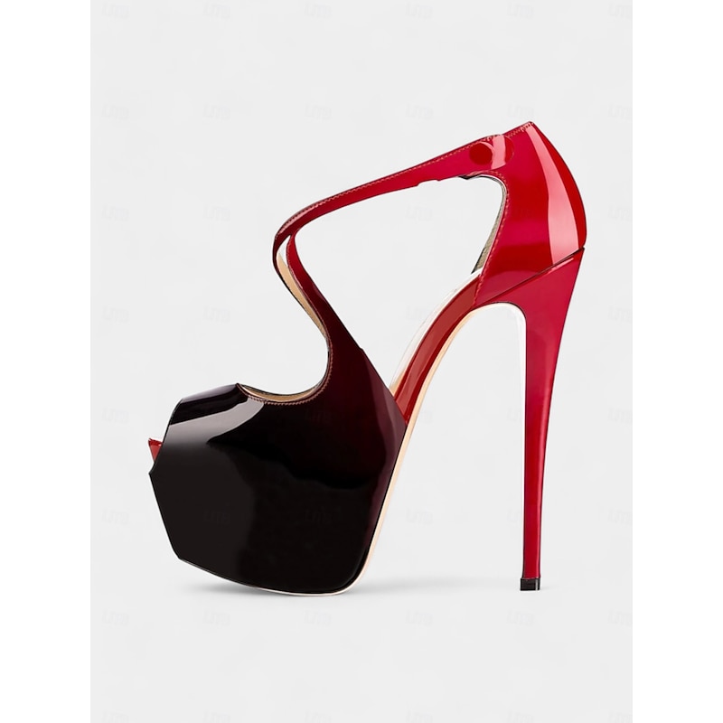 Why Choose Red and Black Patent Leather Platform Stiletto Heels with Cross Straps - Bold Women's Party Shoes?