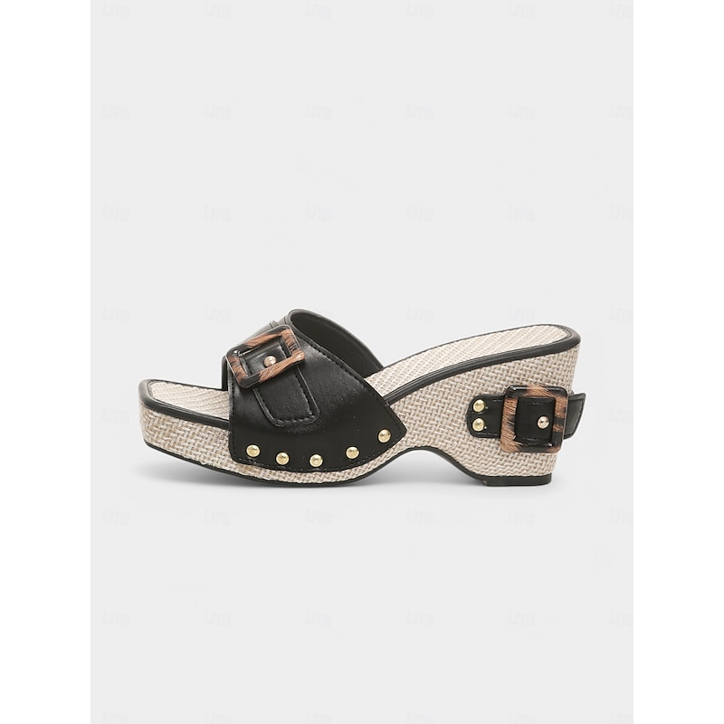 popular ! Women's White Buckle Wedge Sandals – Retro Studded Platform Slide Shoes for Beach, Cruise & Daily Wear