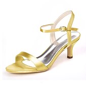 Women's Gold Satin Wedding Heels with Adjustable Ankle Strap – Elegant Open Toe Bridal Shoes for Prom and Special Occasions