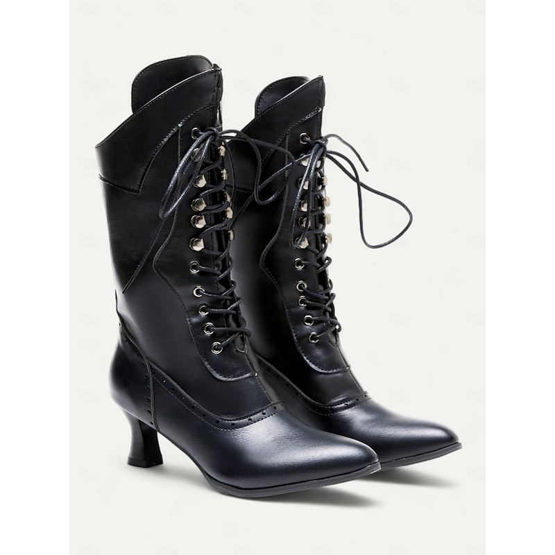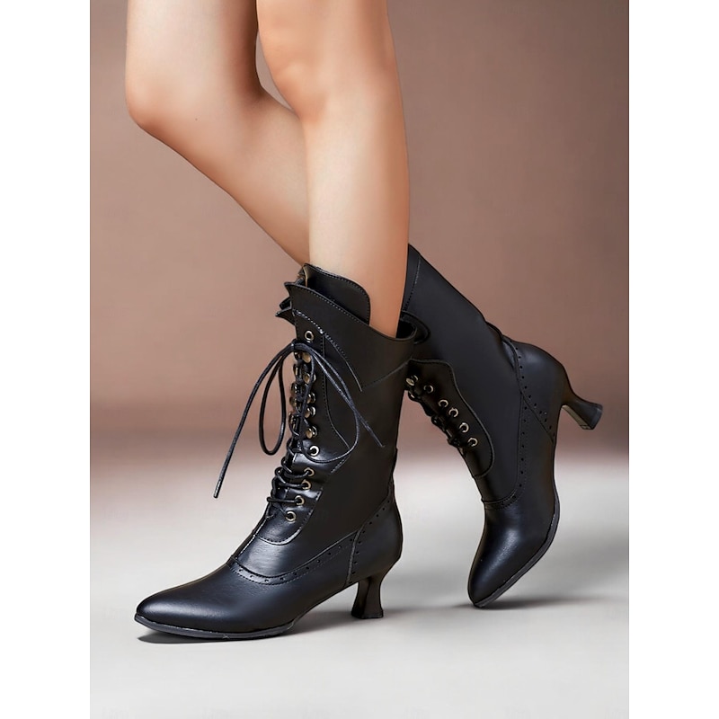 Highlights [Fabric] Made from premium PU leather, these Women's Brown Victorian Lace-Up Boots offer both durability and a soft touch, providing comfort throughout the colder months while maintaining a polished look. [Silhouette] The sleek, mid-calf design of these boots emphasizes a timeless Victorian aesthetic, enhanced by their elegant, elongated silhouette that adds a vintage flair to any ensemble. [Design Highlights] Intricate lace-up detailing paired with delicate button embellishments bring a iconic Victorian charm to these boots. The low, stacked stiletto heel provides retro-inspired style while ensuring stability, and the refined perforated brogue accents add a sophisticated finish. [Occasions] These boots are perfect for a variety of settings, from daily work attire to special events. Whether paired with skirts or dresses, they seamlessly combine style and practicality, making them a versatile addition to both casual and formal wardrobes in spring, fall, and winter. [Size Range] Available in sizes US5.5 to US10.5, these boots follow a standard size guide, allowing you to select your usual size for a snug fit.