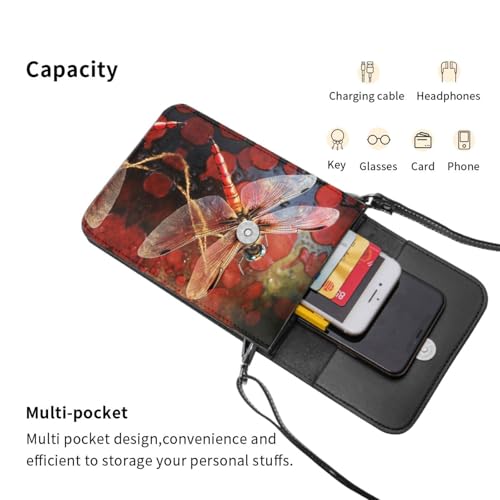 Origin: ImportedClosure type: BuckleLining: LeatherMaterials:This Red Dragonfly Printed Crossbody Mini Bag Is Made Of Soft Leather And Lined With Plush Fabric To Reduce Any Damage To The Items,Suitable For Daily Use.Small And Light:The Crossbody Cell Phone Bag Is 7.5 Inches Long,5.3 Inches Wide And 0.4 Inches Thick,It Is Lightweight And Portable,The Bag Is Small In Size But Large In Capacity,And Can Easily Carry Mobile Phones,Rechargeable Batteries,Etc.Small Cell Phone Purse:The Travel Pouch Uses Magnetic Hardware Closure,Which Is Easy To Open And Close,The Magnetic Buckle Closure Makes It Easy To Take Items And Can Easily Carry Mobile Phones And Other Small Personal Items.Removable Shoulder Strap:The Sling Bag For Women Shoulder Strap Is 23 Inches Long And Can Be Adjusted According To Your Needs,It Can Be Used As A Crossbody Bag Or A Shoulder Bag.Ideal Gift:This Versatile Bag Is Simple And contemporary And Is An Ideal Choice For Travel Accessories,It Is Also A Great Choice For Birthday Gifts For Friends,Family,Girlfriends,Etc. Perfect for everyday use. supreme materials and excellent craftsmanship ensure long-lasting durability.