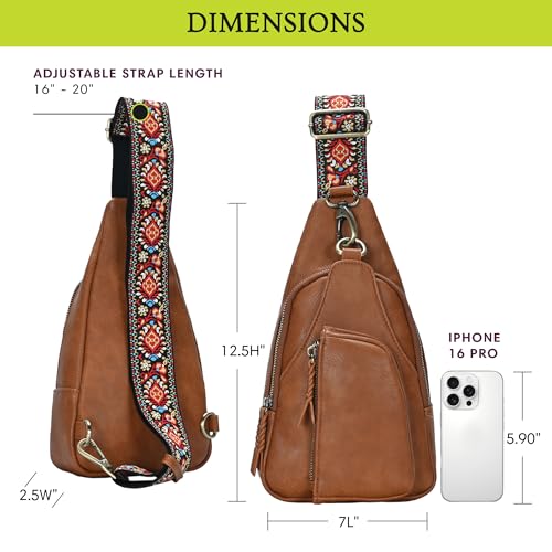 • VEGAN LEATHER: Made from vegan leather, this sling for women is designed to be both sustainable and fashionable. Choose from a variety of muted colors and delight in the supple, distressed feel of the vegan leather. Cute, functional, and fashionable— what else do you need?