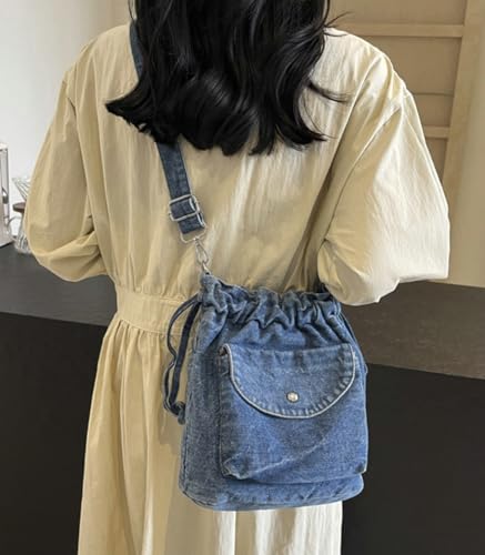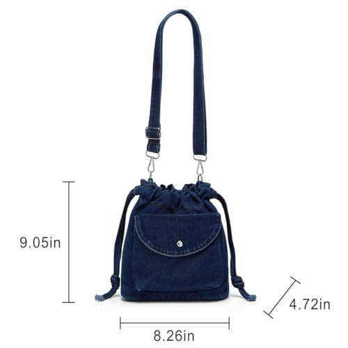 Womens Small Denim Shoulder Crossbody Bag Canvas Bucket Tote Bag Drawstring Lightweight Phone Purse Handbags 7