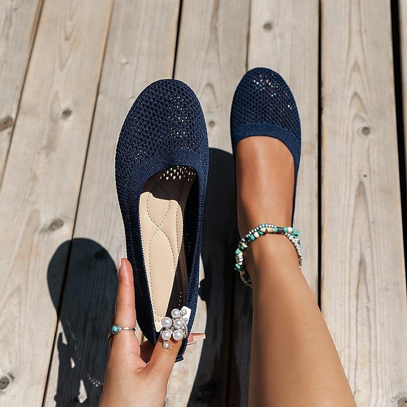 Highlights [Fabric] Crafted with a breathable mesh upper, these slip-on flats are ideal for enhancing ventilation and flexibility during the thermal summer months. The lightweight construction allows for effortless wear throughout the day. [Fit] Featuring a sleek, minimalistic design, these flats embrace a casual aesthetic with a cushy fit. The round toe shape enhances the overall comfort, making them perfect for both work and leisure activities. [Design Highlights] The effortless slip-on style with a loafer closure adds convenience, while the solid color pattern provides a versatile and timeless look. The rubber outsole ensures durability and stability, complementing the flat heel for all-day wearability. [Occasions] Perfect for daily wear and outdoor activities in summer, these flats are versatile companions for casual outings, ensuring comfort and style for a range of everyday scenarios. [Size Range] Available in a wide range of sizes including US6 to US10.5, these flats cater to various foot sizes, ensuring a comfortable fit for everyone.