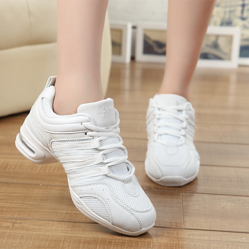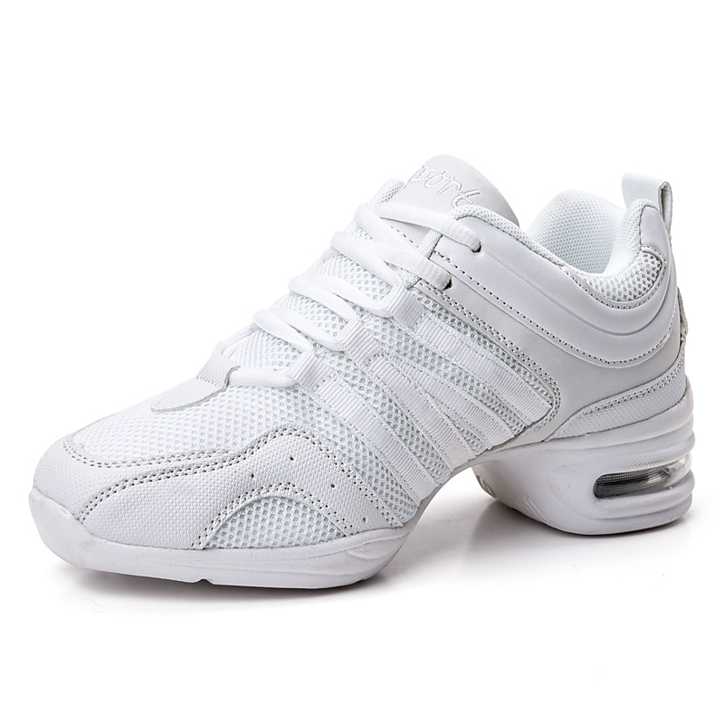Highlights [Fabric] : Designed with a breathable mesh and PU leather upper, these women's dance sneakers offer a perfect combination of comfort and durability. The materials ensure excellent air circulation to keep your feet cool and comfortable during intense dance sessions or workouts. [Fit] : These lightweight sneakers feature a supportive and sleek design tailored for athletic performance. The lace-up closure ensures a customizable fit, allowing the shoes to adapt to your foot’s shape for added stability and comfort. [Design Highlights] : The striking black and gold color scheme is complemented by mustard yellow laces and gold accents on the sides, adding a vibrant touch to your dance ensemble. The robust PVC outsole provides reliable traction, while the thick heel integrates an air cushion for enhanced support and shock absorption. [Occasions] : Ideal for hip-hop, jazz, and other dance performances, these sneakers are also suitable for stage appearances and practice sessions. Their contemporary design makes them versatile enough for both athletic and casual wear. [Size Range] : Available in sizes ranging from US5 to US9.5-10, these sneakers cater to a variety of foot sizes, ensuring a comfortable and snug fit for diverse users. Perfect for everyday use. supreme materials and excellent craftsmanship ensure long-lasting durability.