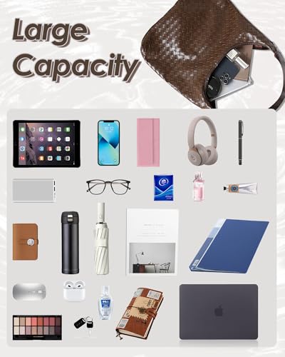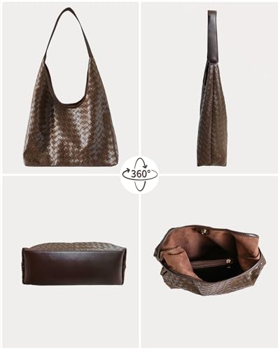 Fabric type: Pu LeatherOrigin: ImportedClosure type: Magnetic【Leather Tote Bag】Crafted from premium PU leather, this shoulder bag consciously eschews animal-derived materials. Artisanal hand-woven accents, combined with an architectural silhouette, effortlessly elevate casual ensembles.【Size reference】Slouchy Bag: 13.78L*3.74W*11.02H inches,handle length is 17 inches. Clutch: 8.66 L*3.15 W*6.3 H inches.【Large Capacity Work Bag】Use it as your work bag—everything fits perfectly while still having some flexibility. It can hold a 16-inch laptop.【Product Details】Features a magnetic buckle closure for easy access to your belongings. The styling and straps are just right, offering sturdiness, and with a matching makeup bag.【Woven Purses】Handwoven leather transforms seamlessly from shoulder bag to tote bag, excellent for Christmas, birthdays, valentine's day, mother's Day and other holiday. Perfect for everyday use. supreme materials and excellent craftsmanship ensure long-lasting durability.