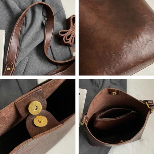 Women's Bucket Shoulder Tote Bags Fashion Large Top Handle Satchel Handbags PU Leather Crossbody Purses 2pcs