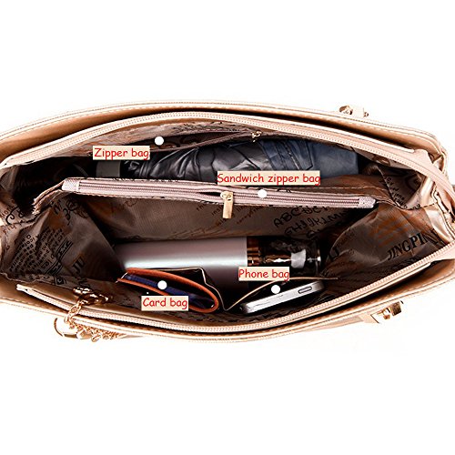 Chikencall Women Fashion PU Leather Satchel Hobo Handbag Handbag+Shoulder Bag+Purse+Card Holder 4Pcs Set Tote Handbag 7