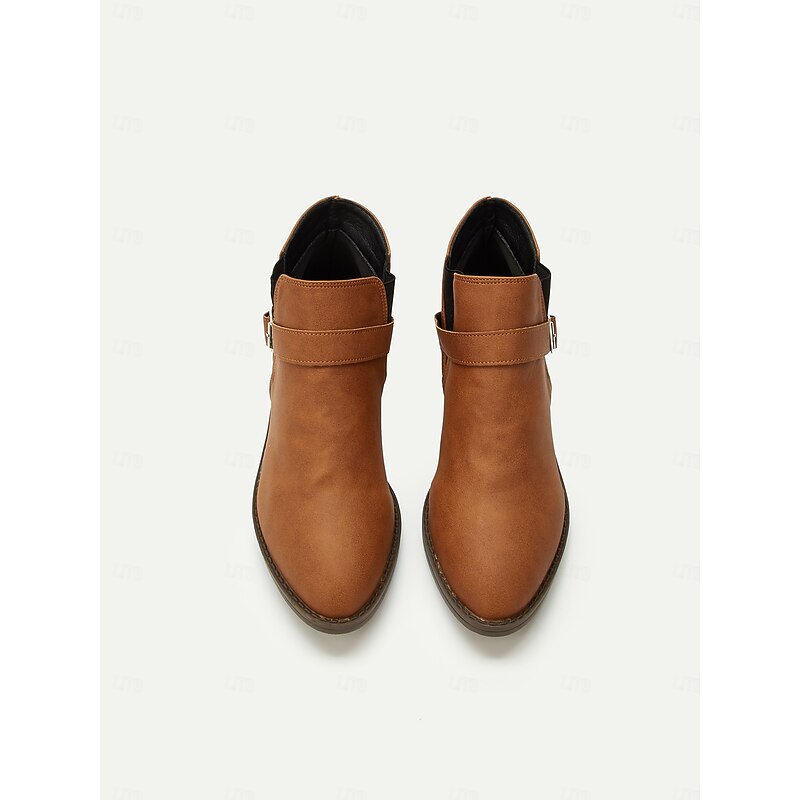 Women's Brown Faux Leather Ankle Boots with Buckle Detail in Western Style for Casual and Everyday Wear 5