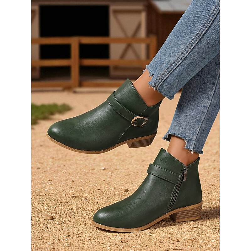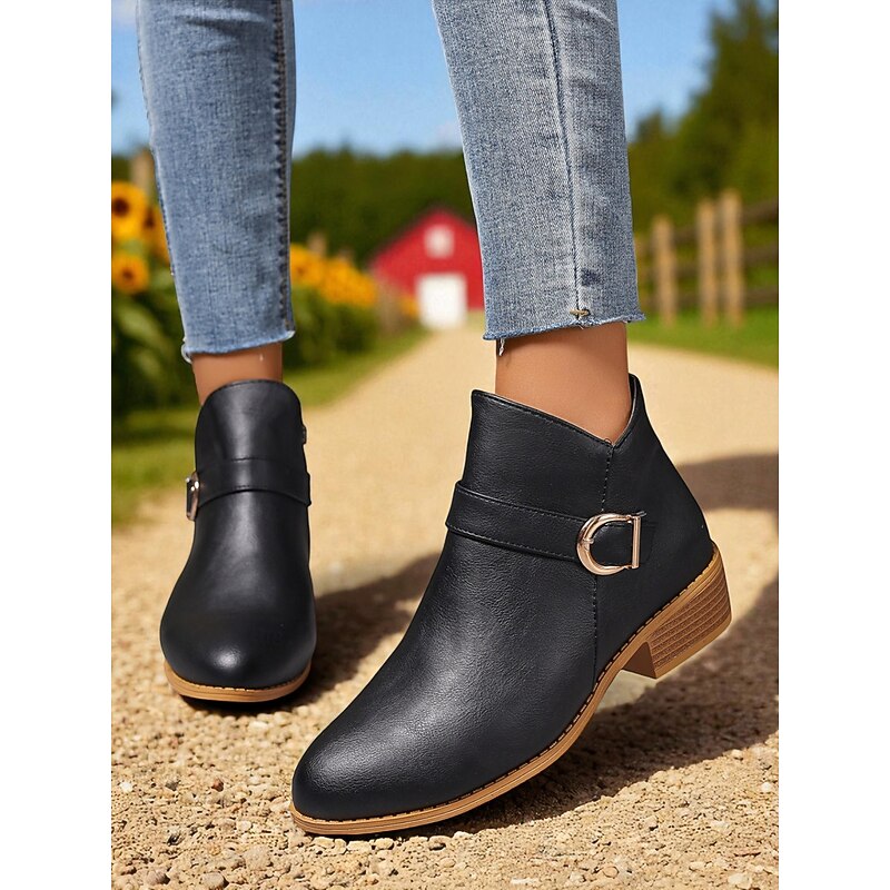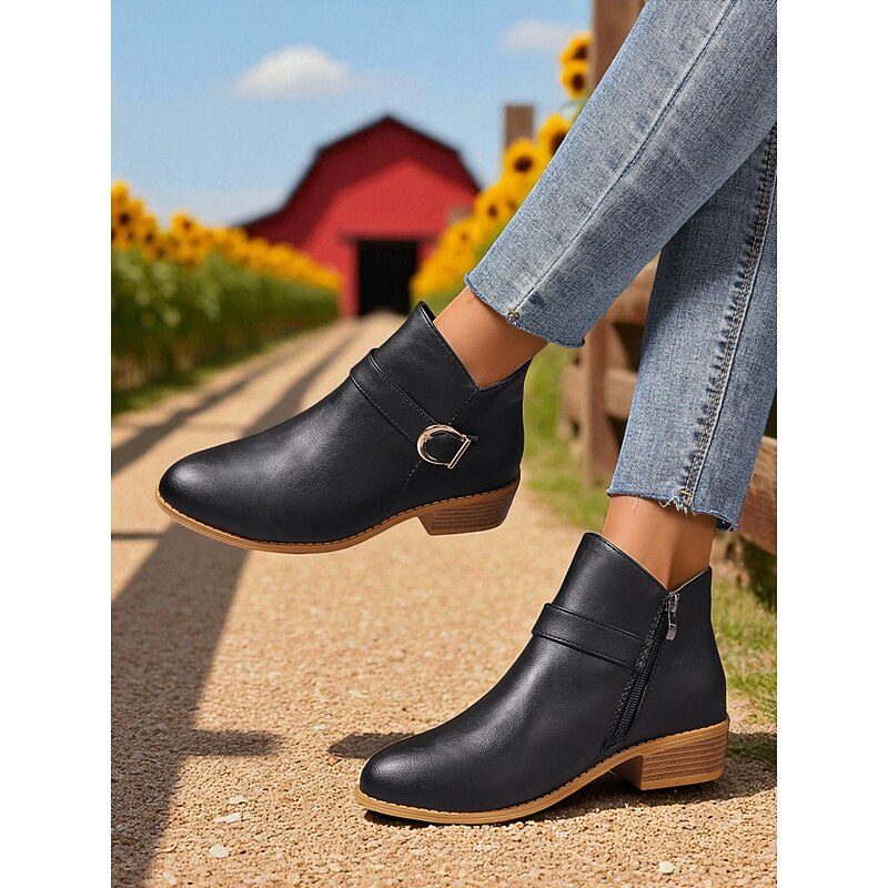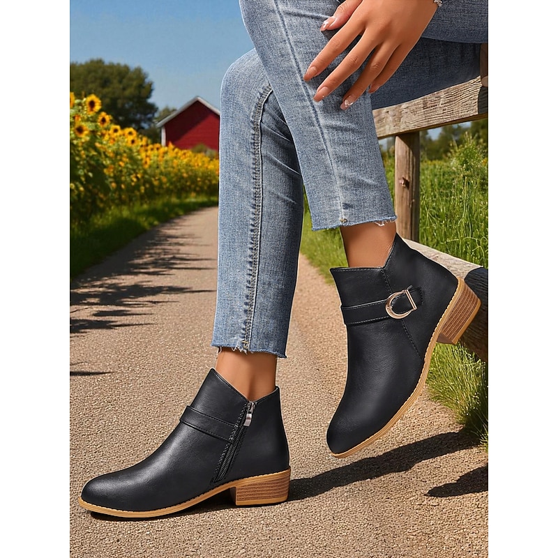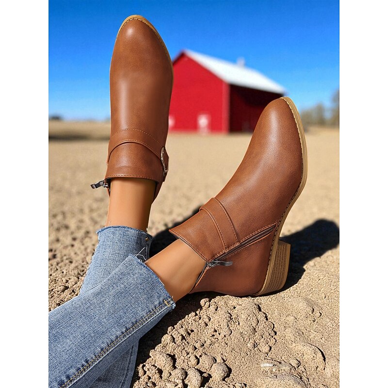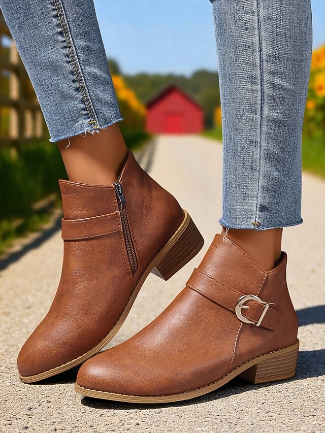 Why Choose Women's Brown Faux Leather Ankle Boots – Low Heel Side Zip Buckle Booties for Fall Outings, Country Walks and Daily Wear?