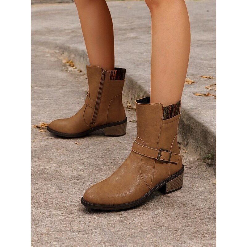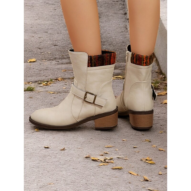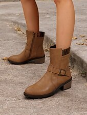 Featuring a trendy round toe and a classic mid-calf silhouette, these boots provide a fashionable yet comfortable fit for everyday use. The chunky wooden block heel adds a touch of height without sacrificing stability, perfect for all-day wear.