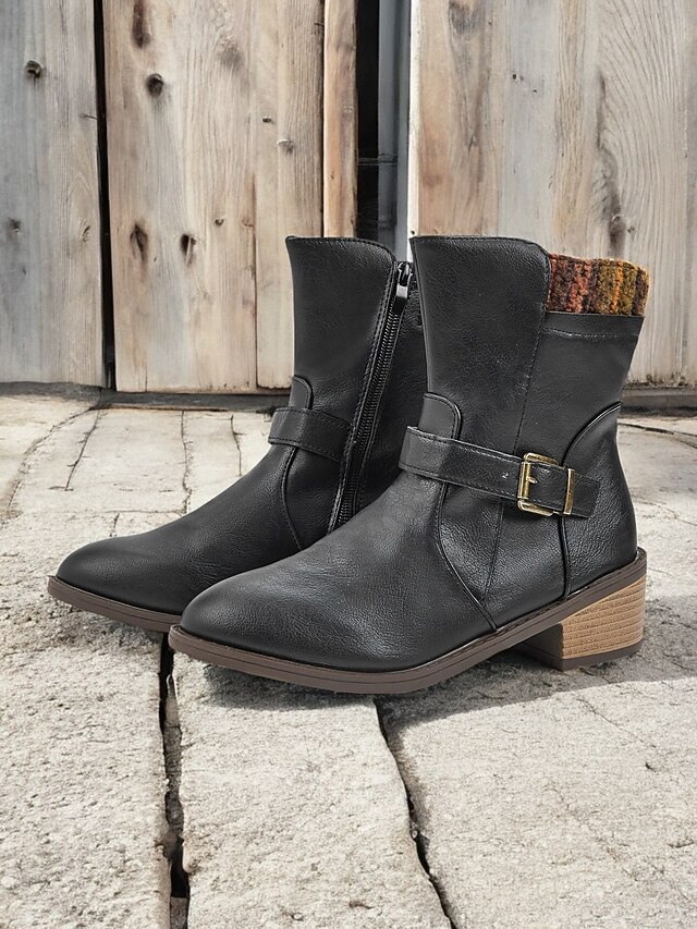 These Women's Black Mid-Calf Boots are expertly crafted from high-quality PU materials combined with a colorful knit cuff, offering both durability and a cozy texture for any season. The textile lining further ensures comfort and warmth, making these boots ideal for Spring, Fall, and Winter wear.