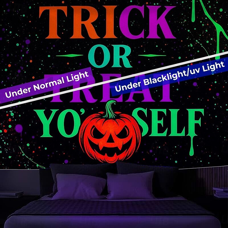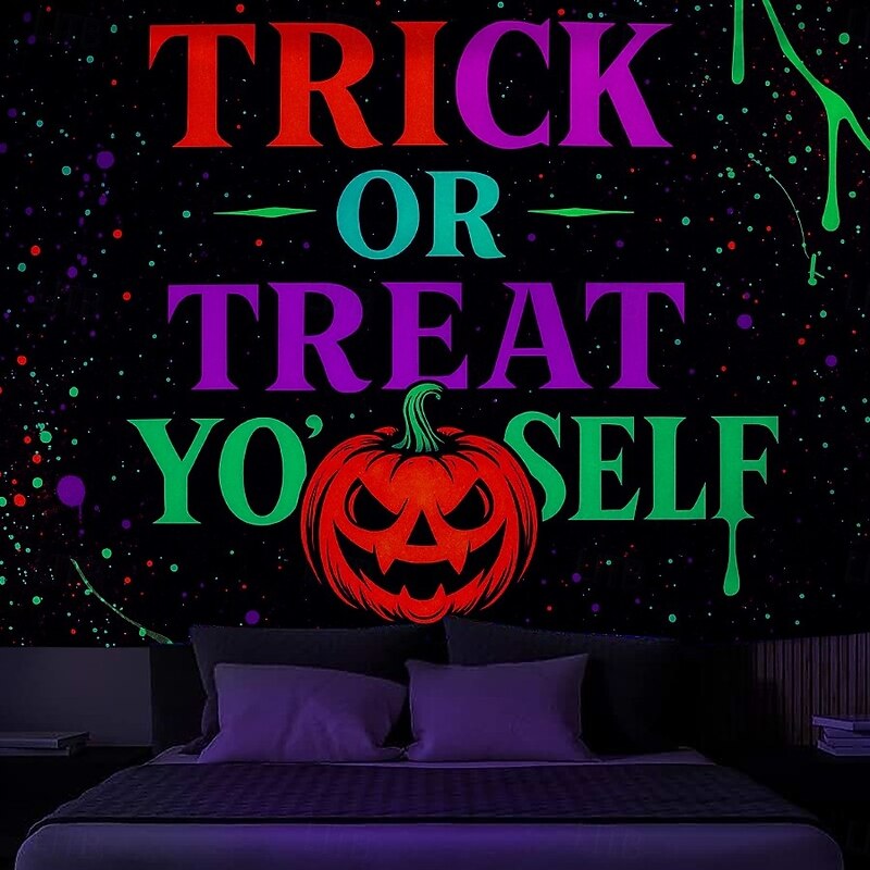 $13.99 - Halloween Blacklight Wall Tapestry – UV Reactive Witch , 'Ghouls Just Wanna Have Fun' Quote, Neon Colors Spooky Scene, Glow in the Dark Gothic Wall Hanging for 2025 Halloween Decoration 2025. Shop for cheap Halloween Wall Tapestries online? Buy at lightinthebox.com on sale today!