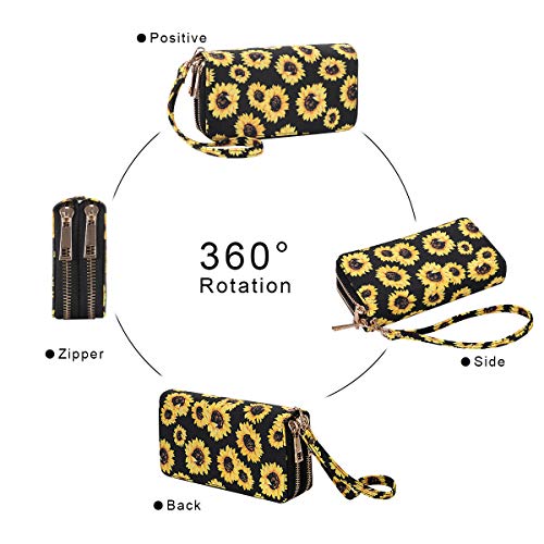 XEYOU Double Zipper Long Clutch Wallet Cellphone Wallet for Women with Removable Wristlet Strap for Credit Card, Cash, Coin, Bill