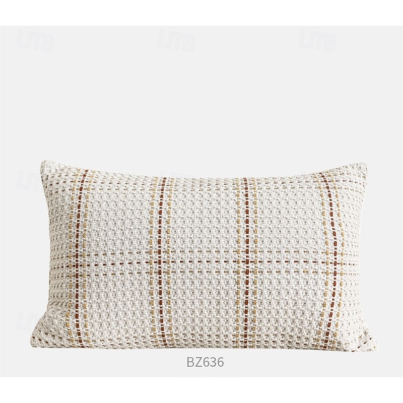 popular ! Nordic Christmas Style Beige and Brown Plaid Throw Pillow, Decorative Cushion for Living Room, Bedroom, Lumbar Pillow, Pumpkin Accent Pillow