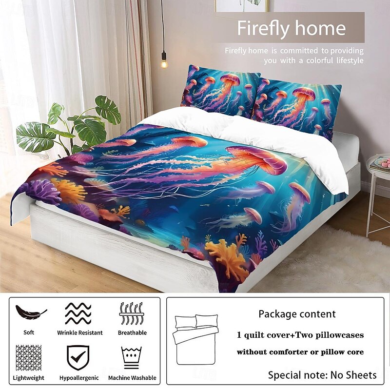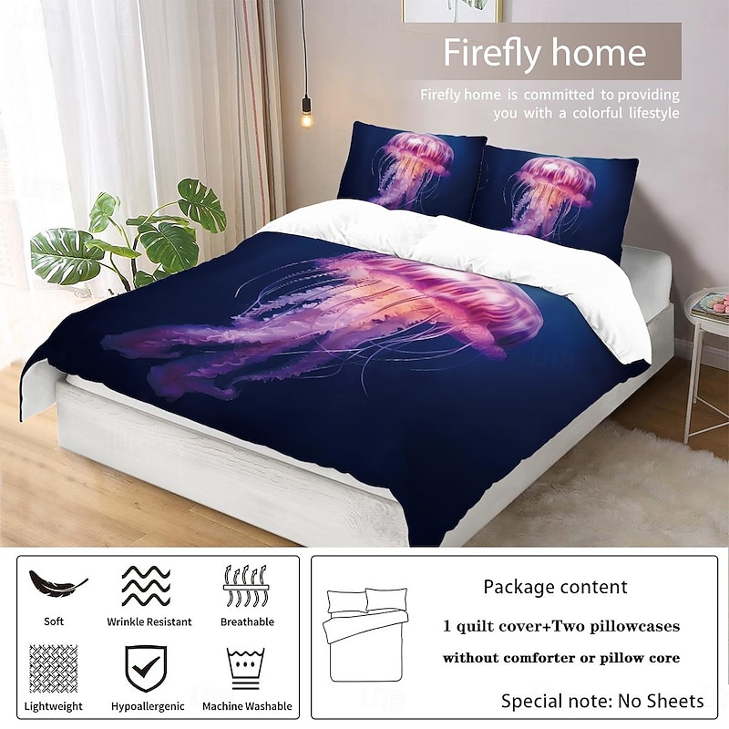 $43.99 - Underwater Ocean Dream Jellyfish Duvet Cover - Enchanting Marine Life Design - Soft and Comfortable Fabric - Perfect for Adding a Mystical Touch to Your Bedroom Decor - Easy to Wash and Maintain 2025. Shop for cheap Duvet Cover Sets online? Buy at lightinthebox.com on sale today!