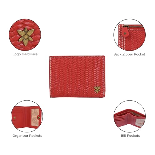 Anna by Anuschka Heritage Collection Women's Genuine Leather Mini Two-Fold Wallet - Basket Embossed Caladium Green