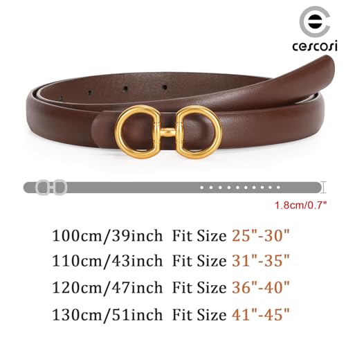 CESCOSI Women Skinny Leather Belts Ladies 2 Pack Thin Waist Belts with Gold Buckle for Dresses 0.7" Width