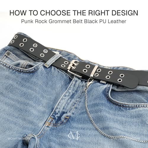 More information about CRAFTMEMORE Punk Rock Grommet Belt, Black PU Leather, 41 inches, Metal Eyelets, Detachable Chain SPB2