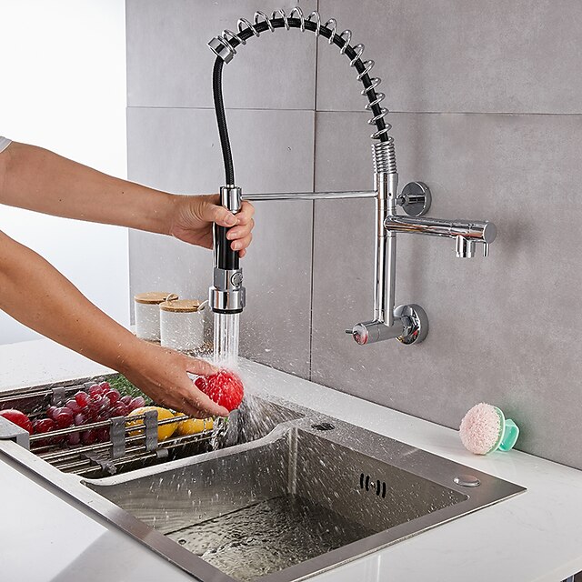 Highlights Wall Mount Kitchen Faucet : The kitchen sink faucet pull down sprayer has two water outlet modes, suitable for home bathroom and shower, easy to use and convenient to use. Dual Swive Spout : The dual swivel spout can be switched between two devices at the same time, and the faucet body is easy to use. Dual swivel spout provides a larger opening area and more comfortable cleaning. 360 Degree Swivle Sprayer and Spout : This pull down kitchen faucet with 360 Degree Swivle Sprayer and Spout can turn on at the same time which will be great helpful for us to do washing in two sinks. Single Handle : Single handle design, easy to control the water outlet. Single handle design for easy to hold, ergonomic and comfortable to use. Easy to install : contemporary simple and practical designs, this single hole bathroom faucet uses the standard universal ports, convenient and safe, very easy for installation, ideal for prolonged contact with water. Note: Dear buyer, if the parcel is found to be badly damaged, please take a photo, reject it and contact us for resolution. Because of the size measurements are handmade, so there may be 1-3CM error. Please understand because of the light irradiation or computer display difference, so I can't guarantee photos and real color is 100% the same. Perfect for everyday use. excellent materials and excellent craftsmanship ensure long-lasting durability.