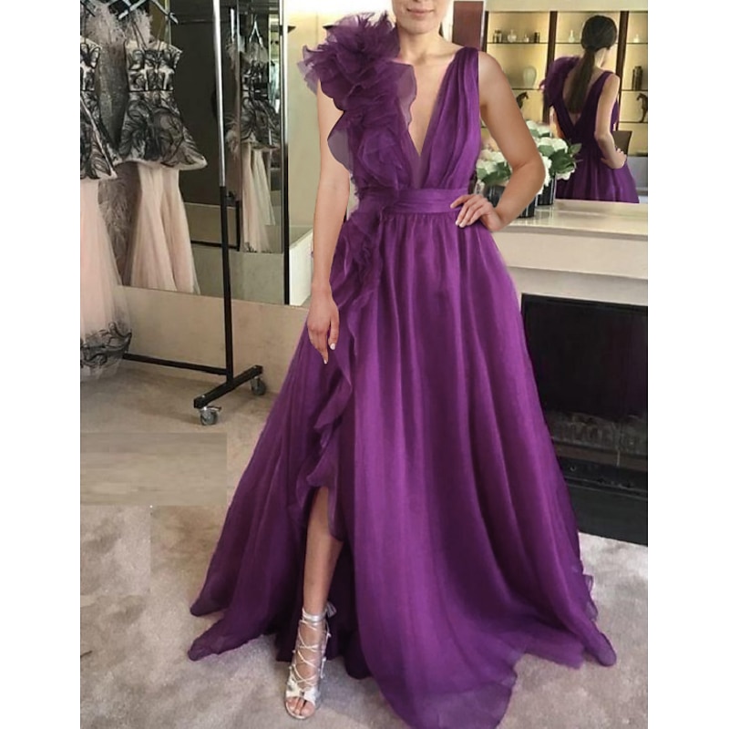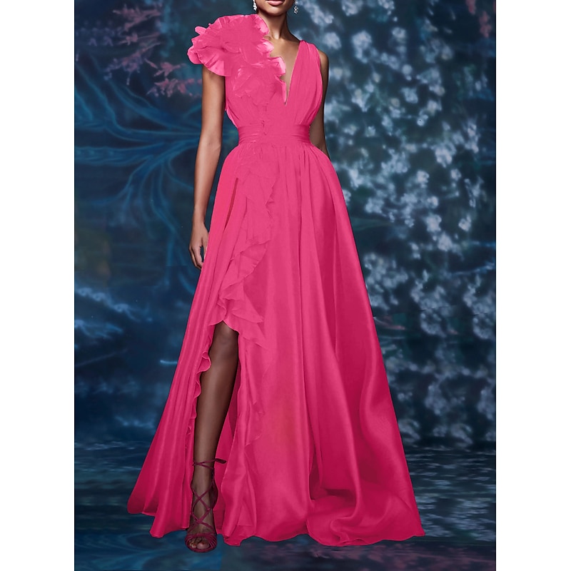 This Beach Wedding A-Line Chrismas Dress Evening Gown Celebrity Style Dress Formal Wedding Guest Floor Length Sleeveless V Neck Chiffon with Slit Pure Color dress Masquerade Dress combines elegant design with practical functionality. Every detail has been carefully considered to ensure you get the leading possible experience. The first-class construction means this product will serve you well for years to come.