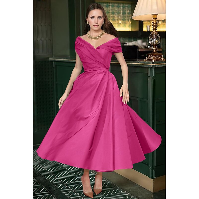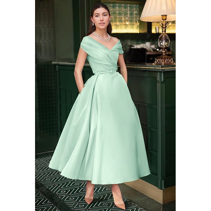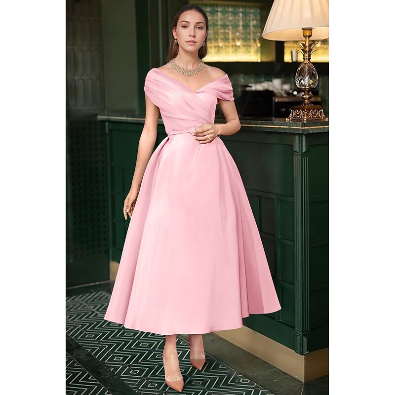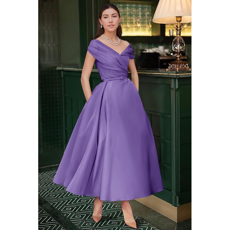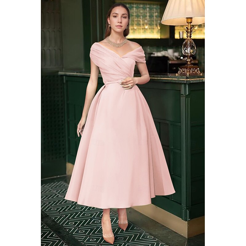 This Beach Wedding A-Line Cocktail Dresses Elegant Dress Wedding Guest Summer Ankle Length Sleeveless Off Shoulder Fall Wedding Guest Satin with Ruched Dresses combines elegant design with practical functionality. Every detail has been carefully considered to ensure you get the finest possible experience. The first-class construction means this product will serve you well for years to come.